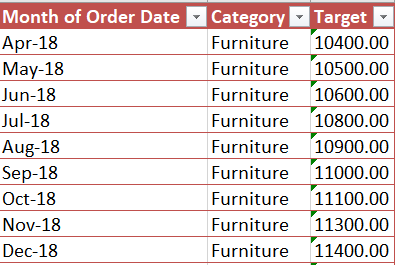 select H.Category,sum(H.Target) as ‘Toplam Sipariş Hedefi’,sum(D.Amount) AS ‘Toplam Fiyat Tutarı’, sum(D.Quantity) AS ‘Toplam Ürün Miktarı’