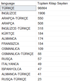 select language,count(title) as 'Toplam Kitap Sayıları'