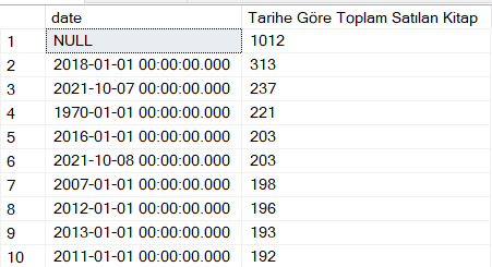 select date,count(title) 'Tarihe Göre Toplam Satılan Kitap'