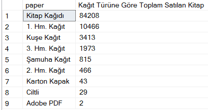 10-Kağıt türlerine göre basılan kitapların toplam satış sayısı