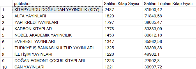 Kitap satışlarının verilerini analiz edip SQL üzerinden çeşitli sorulara SQL ile cevap verilerek tablolar halinde eklenmiştir.