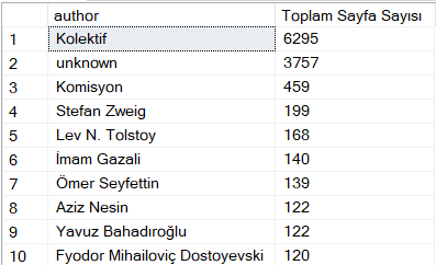 select author,count(page) As 'Toplam Sayfa Sayısı'