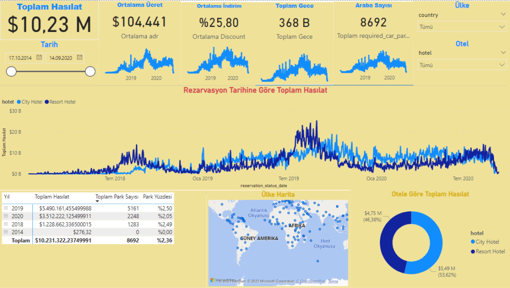 Bu çalışmamda bir otelin 2018,2019 ve 2020 yılına ait müşteri verilerini SQL’de analiz ederek Power BI’da görselleştirdim. Projenin devamı aşağıdaki yazımda yer almaktadır.